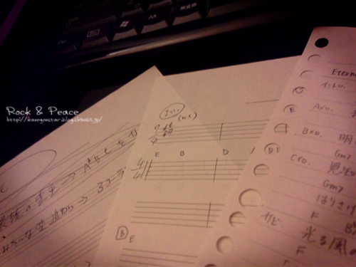 数曲を同時進行で片付けていき、増えて行くメモ書きと譜面。