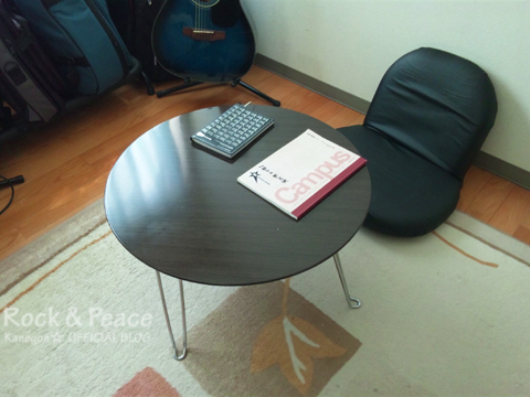 ちゃぶ台に座り、ギター抱えて作曲します。